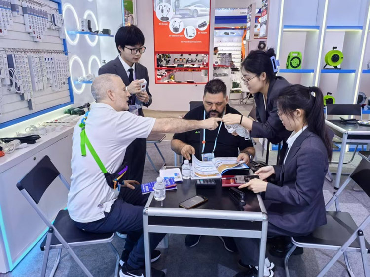 137 वें कैंटन फेयर 15 अप्रैल से 19 अप्रैल, 2025 तक गुआंगज़ौ में भव्य रूप से आयोजित किया गया था।एक्सटेंशन कॉर्ड, केबल रील, पावर स्ट्रिप, एडेप्टर, एक्सेसरीज। बूथ नंबर पर: 14.2E30-32F11-12, हॉल 14.2, वैश्विक ग्राहकों की पेशकशपेशेवर वन-स्टॉप सोर्सिंग सेवाएं.
